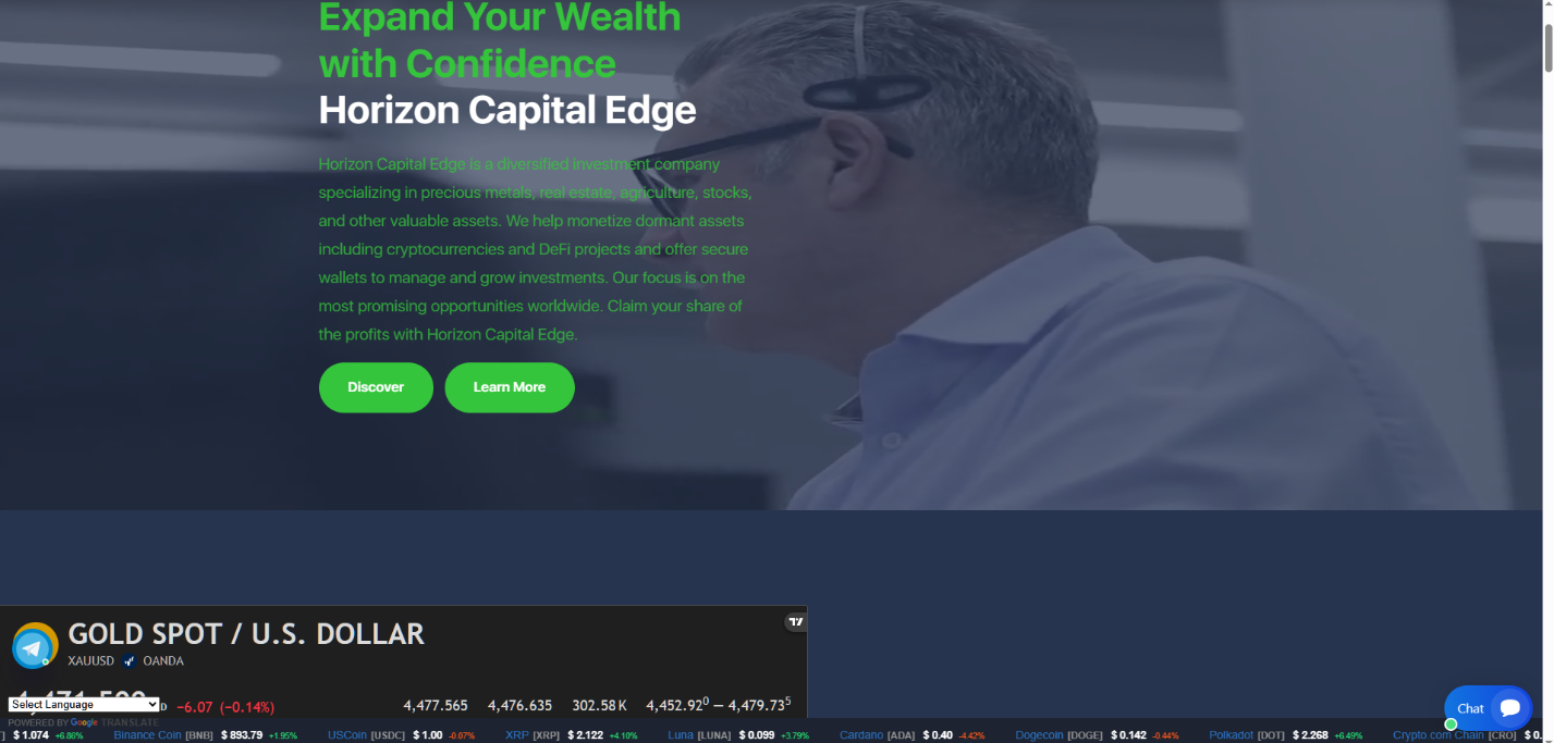 Инвестиционный проект Horizon Capital Edge гарантирует всем участникам великолепное финансовое будущее. Компания заявляет, что инвестирует средства своих клиентов в различные прибыльные активы: золото, серебро, уран и платину. Также международная фирма вкладывает деньги в недвижимость, сельское хозяйство, минеральные ресурсы, акции.