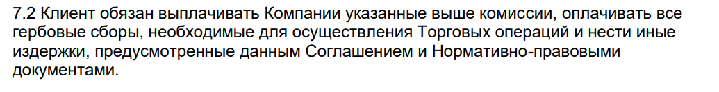 Начиная торговлю, пользователь также соглашается выплачивать все требуемые от него сборы и “нести иные издержки”.