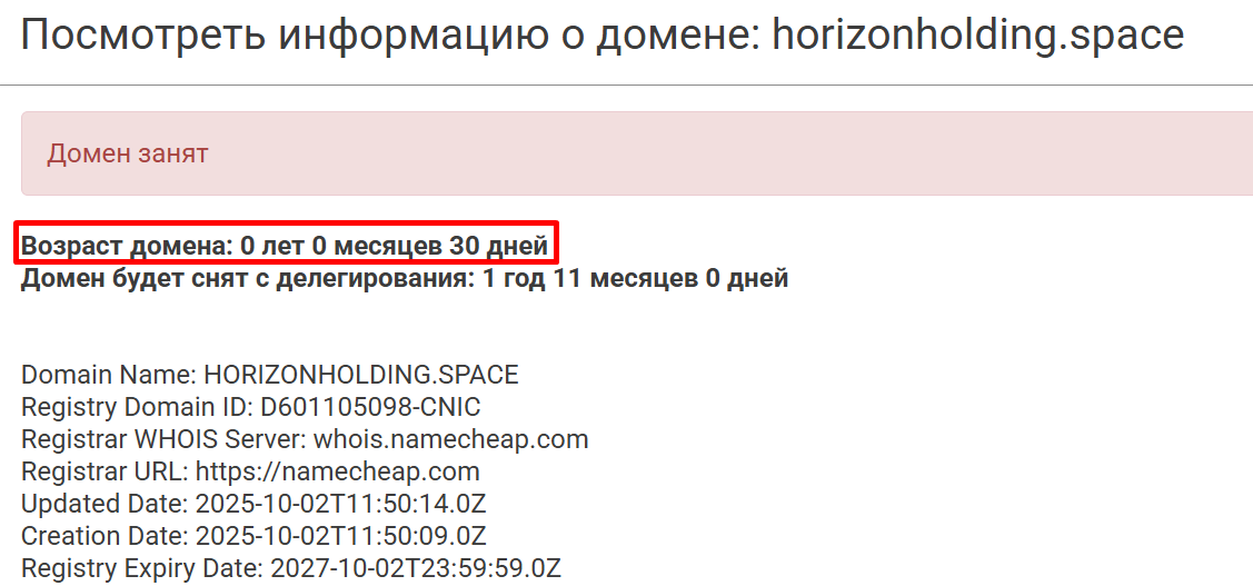Доменное имя Horizonholding space зарегистрировано месяц назад.