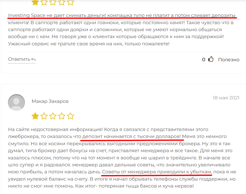 Согласно отзывам про Horizon holding, брокер-лохотрон не выводит деньги клиентов, а аналитики работают за комиссию с целью слить максимально возможные депозиты клиентов. Также пользователи сообщают, что в разрез с указанной на официальных сайтах мошенников информацией, минимальный вклад начинается от 1000 долларов.