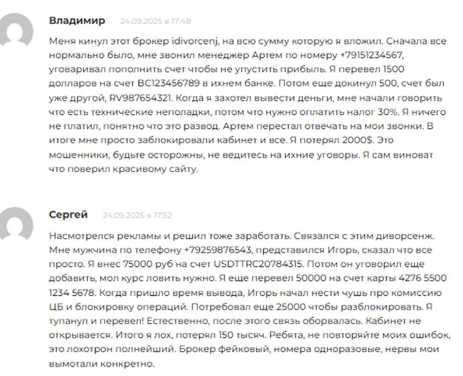 Обзор брокера Idivorcenj com: отзывы, анализ безопасности и торговых условий «Идиворсенж»
