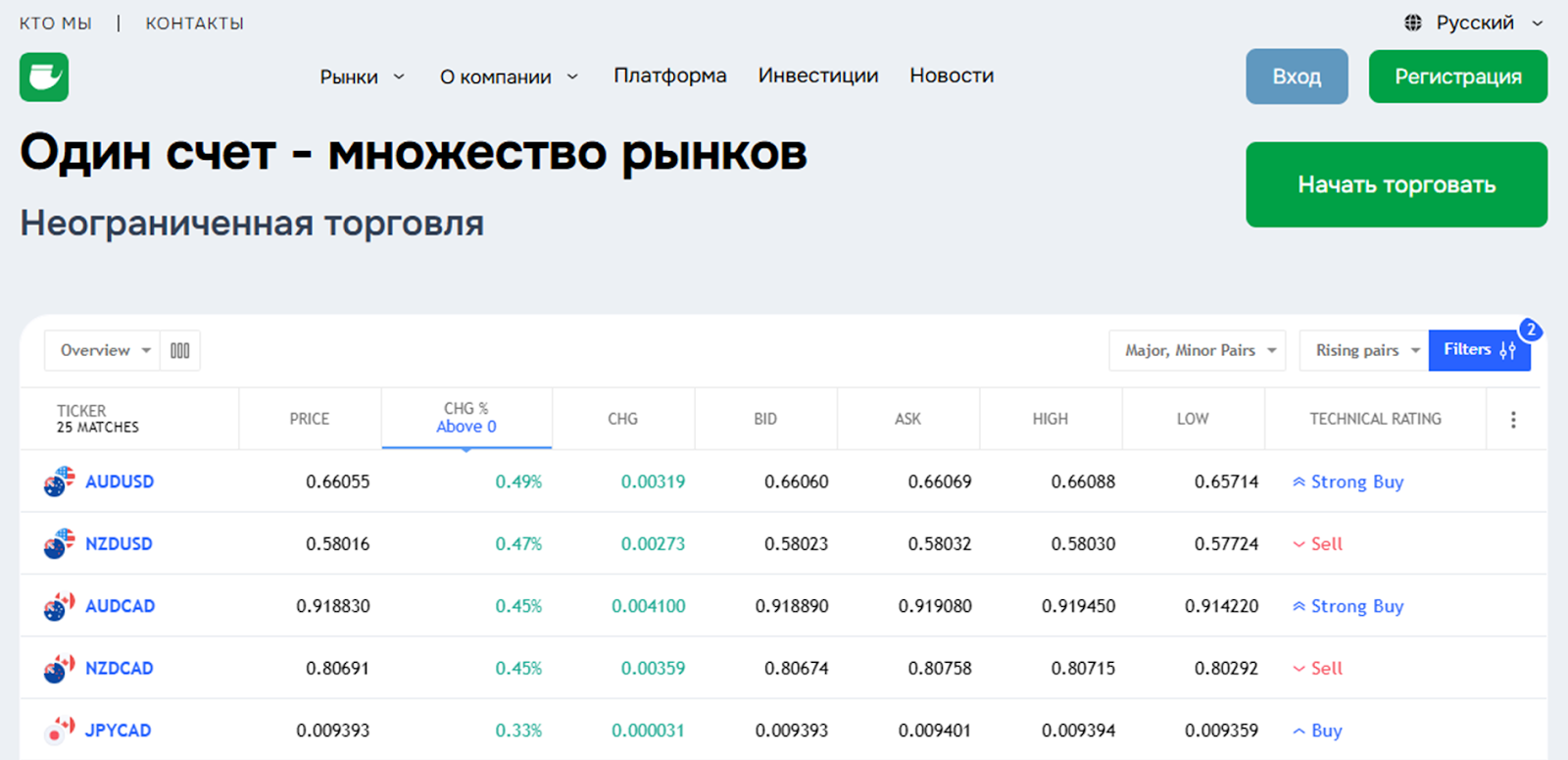 - широкий выбор актива, для торговли которыми достаточно создать один аккаунт;