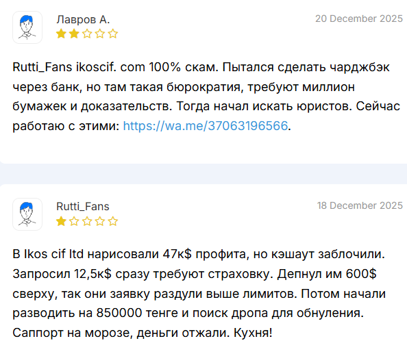 В сети только негативные отзывы об Ikoscif. Люди жалуются на невозможность вывести деньги. Многие считают проект разводом и фейковым сервисом.
