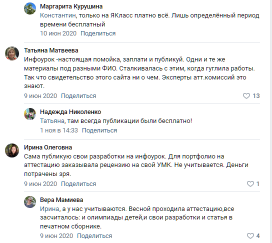 - Хотя на сайте написано, что работа на платформе дает дополнительные баллы к рейтингу преподавателя, это не так. Многие департаменты образования в регионах не учитывают размещение методических курсов и тренингов на данной платформе и не добавляют баллы в листах самооценки учителей.