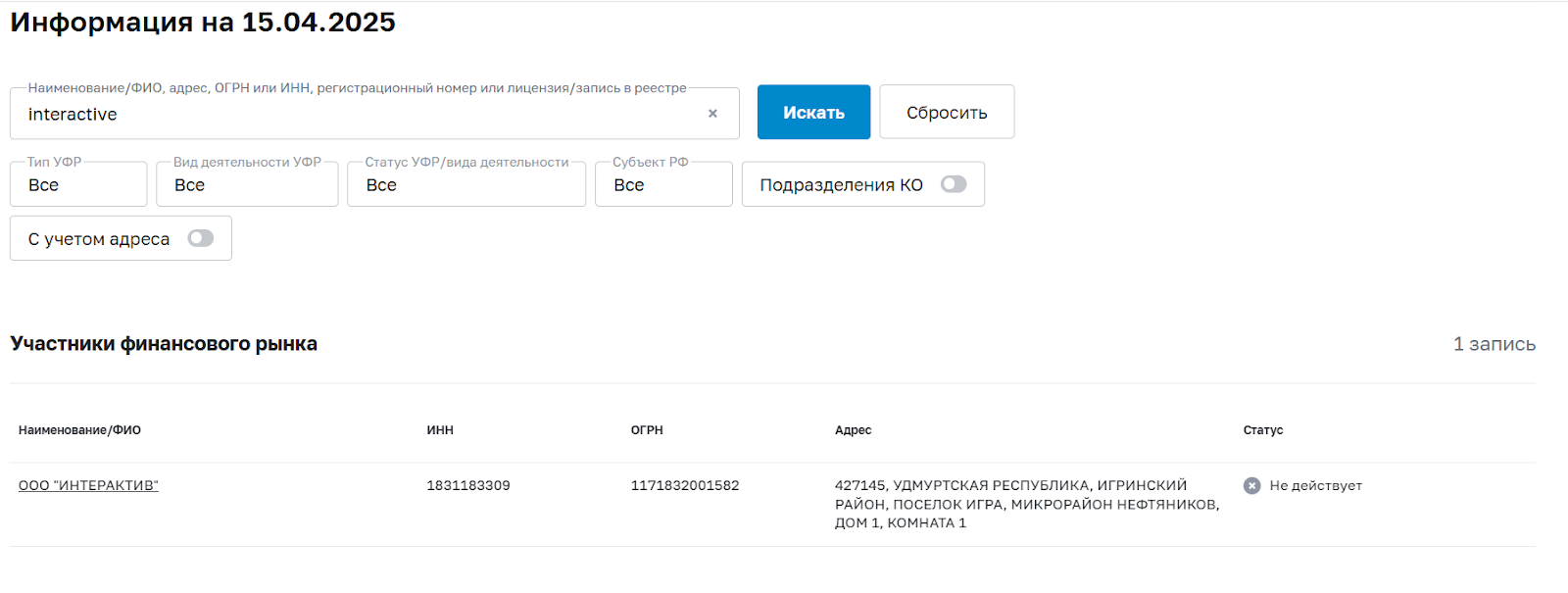 Еще один момент – законодательство РФ деятельность терминала не регулируется. На портале Центрального Банка России название фирмы мы не нашли. Если клиент потерпит убытки, восстановить справедливость будет проблемой. А как говорят отзывы про «Интерактив», слить депозит и потерять деньги здесь очень легко.