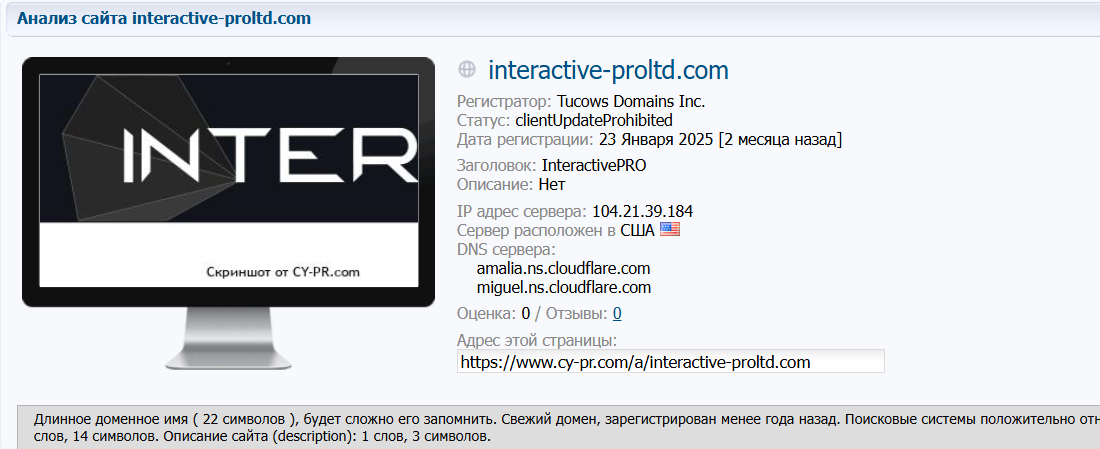 - домен зарегистрирован 2 месяца назад, это сайт-однодневка;