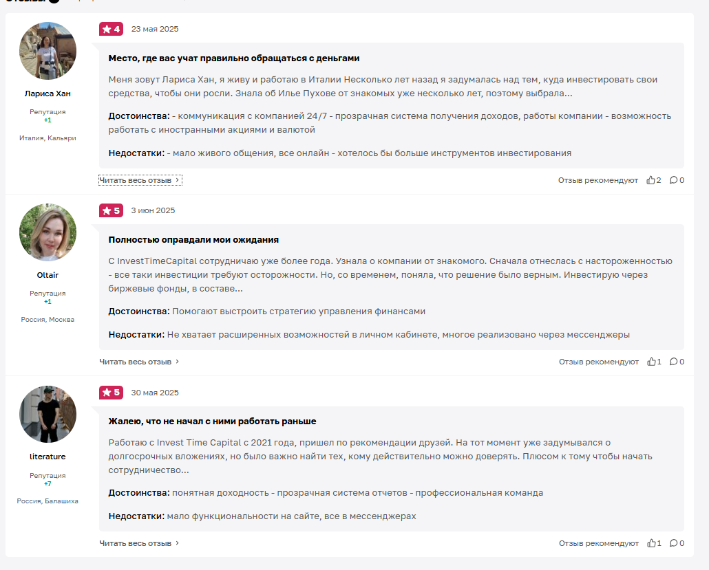 Отзывы трейдеров о работе с Invest Time Capital