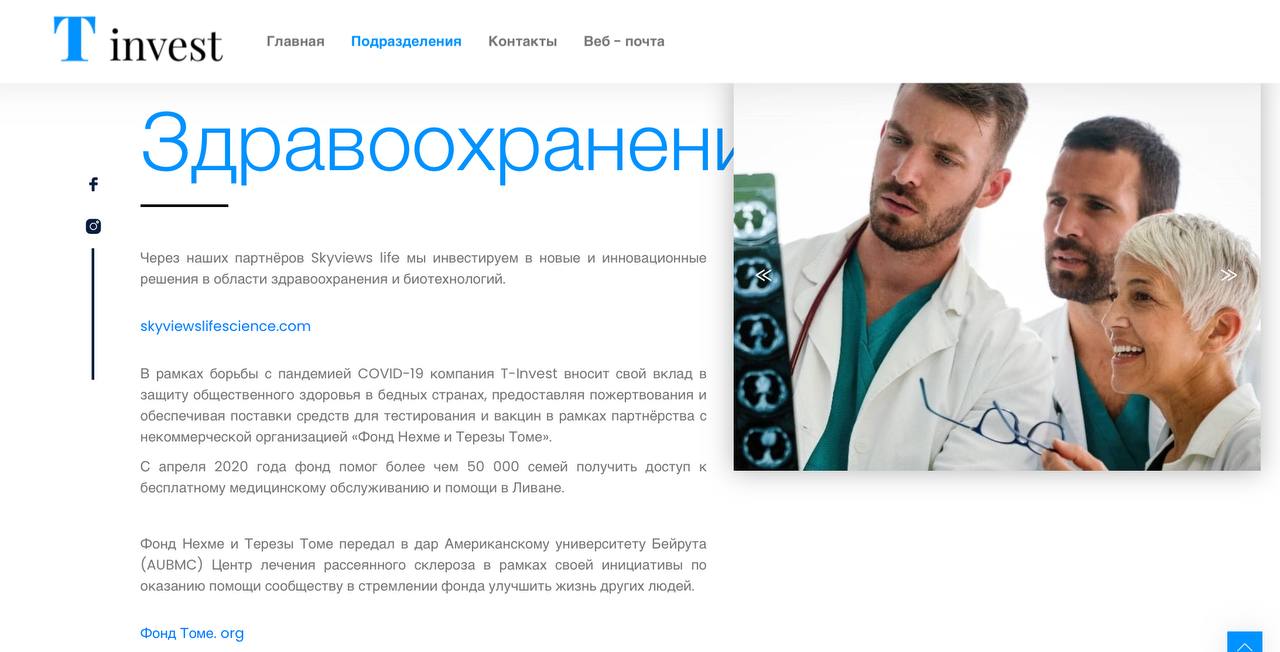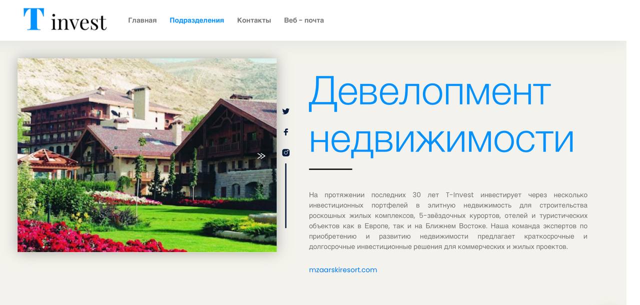На главном меню страницы владельцы кратко описывают свой сервис. Брокерская служба инвестирует в крупные компании, которые оказывают положительное влияние на жизнь людей. Полное название организации — T-Invest Holdings Ltd. Фирма занимается привлечением долгосрочных инвестиций в различных отраслях. Она была основана Юсефом Н. Томом, им же и возглавляется. Однако информации о предпринимателе нет в сети.