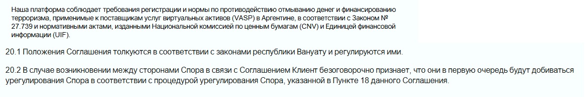 С этой фирмой прослеживается интересный географический нюанс: домен размещен на израильском хостинге, нормативные требования подчиняются VASP Аргентины и указан адрес — Проспект Мелиан, 3913 C1430EZE Комп. Автонома Буэнос-Айреса, офисы находятся в Великобритании, а вот все спорные вопросы находятся в юрисдикции Вануату.
