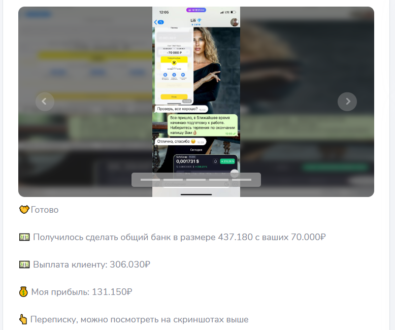 • Статистику по сделкам Ксюша не ведет, поэтому нельзя убедиться в том, что они вовсе заключаются ее и приносят настоящий стабильный доход.