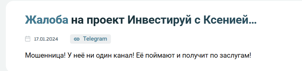 На независимых ресурсах в Интернете не обнаружено вовсе положительных впечатлений. Пользователи отмечают, что у Ксюши не один канал и она давно занимается фейковыми инвестициями в крипту.