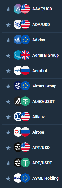 Kyphomd com позволяет торговать десятками разных активов. В их числе — акции Danone и «Алросы», евро и британский фунт, криптовалюты BNB и ADA. Трейдеру будет из чего выбрать, что можно отнести к плюсам сервиса.