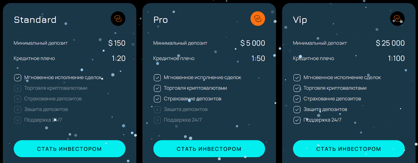 - Vip – депозит от 25 тысяч долларов, кредитное плечо 1:100, круглосуточная поддержка и защита вкладов.