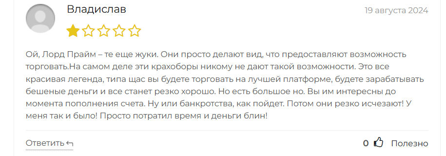 - негативные отзывы о Lord prime;