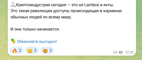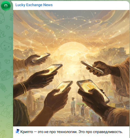 «Лаки Эксчендж» публикует не только новости, но и различные мотивационные посты и цитаты. Разного рода посты мотивируют пользоваться криптовалютами, поскольку это не только про технологии, но и про справедливость.