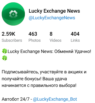 О том, когда LuckyExchange bot был создан на канале проекта не говорится. Как следует из названия, бот работает круглосуточно. На канале проводятся акции, пользователи и подписчики смогут получать различные бонусы при обмене крипты. На канале набралось более 2 500 подписчиков.