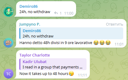 - подписчики канала в Телеграм постоянно жалуются на задержки выплат;