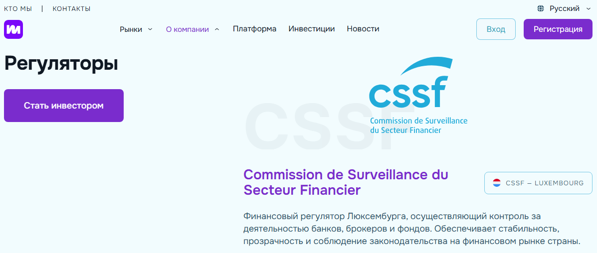 На официальном сайте указано, что компания зарегистрирована на Кипре и якобы регулируется сразу четырьмя известными органами — CSSF, FCA, DFSA и VFSC.
