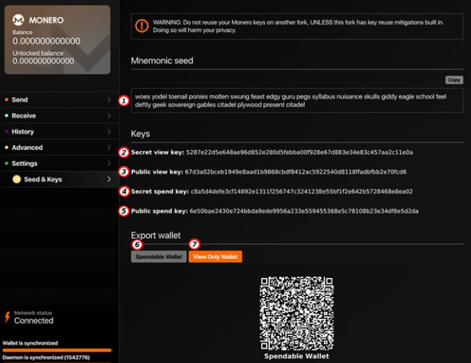 Клиентам кошелька не рассказывают о способах защиты пользовательского депозита и транзакций в сети. В разделе Mnemonic seed пользователям были доступны секретные фразы и ключи для восстановления доступа к аккаунту.