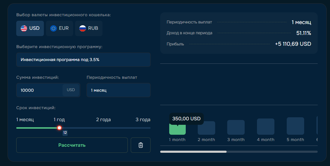 Также брокер MoonLuminare предлагает открыть инвестиционный аккаунт, якобы позволяющий получать до 51.11% дохода за год, что трудно назвать реальным рыночным предложением.
