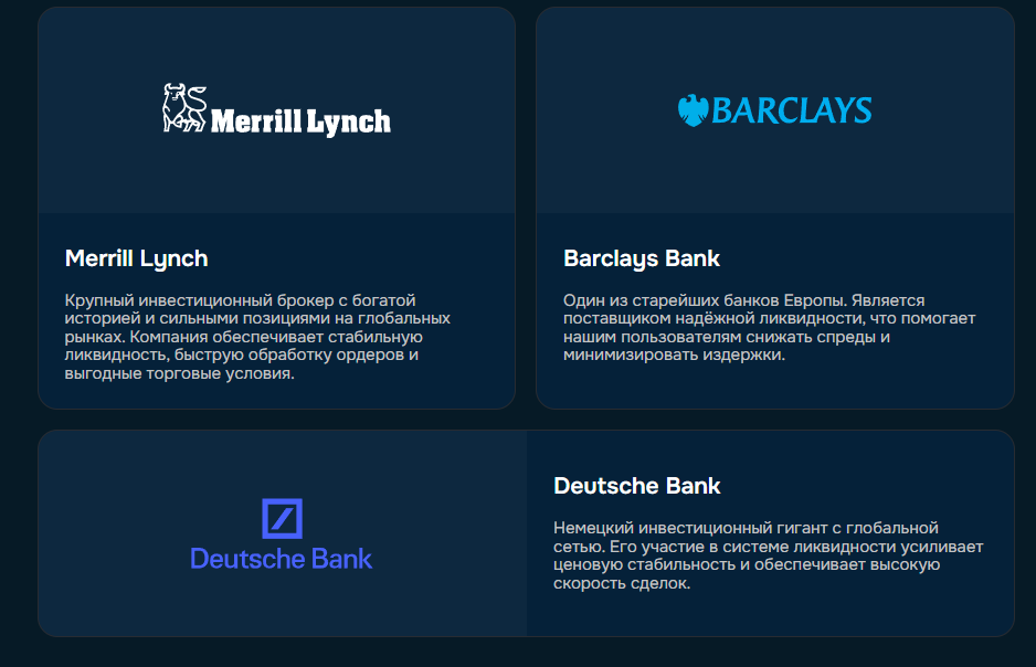 Также в рамках портала заявлено, что компания сотрудничает с международными банками и инвестиционными фондами для обеспечения гарантий платежеспособности, но, вероятно, и эта информация неверна. На сайтах перечисленных организаций нет ни одного упоминания, связанного с брокером или отсылающего к совместной работе.