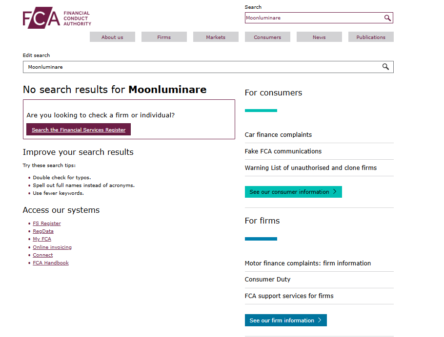 В рамках настоящего реестра надзорного органа нет данных о брокере MoonLuminare, что позволяет судить о возможной попытке обмана со стороны представителей организации, но мотивы предоставления ложной информации остаются неизвестными.
