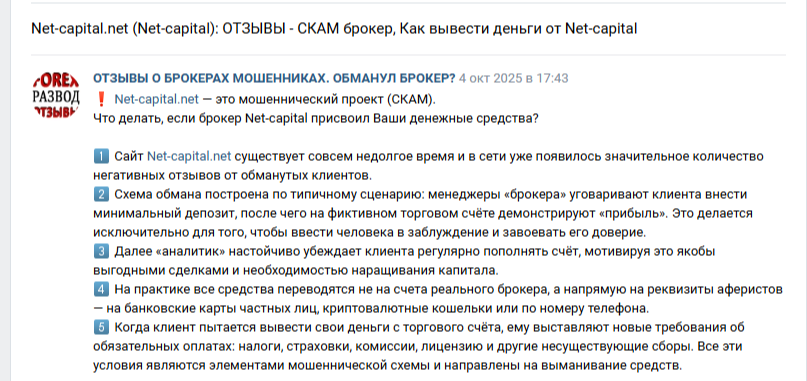 Мы не рекомендуем сотрудничать с Net Capital для трейдинга. Если вы имели опыт взаимодействия с платформой, поделитесь им в комментариях.