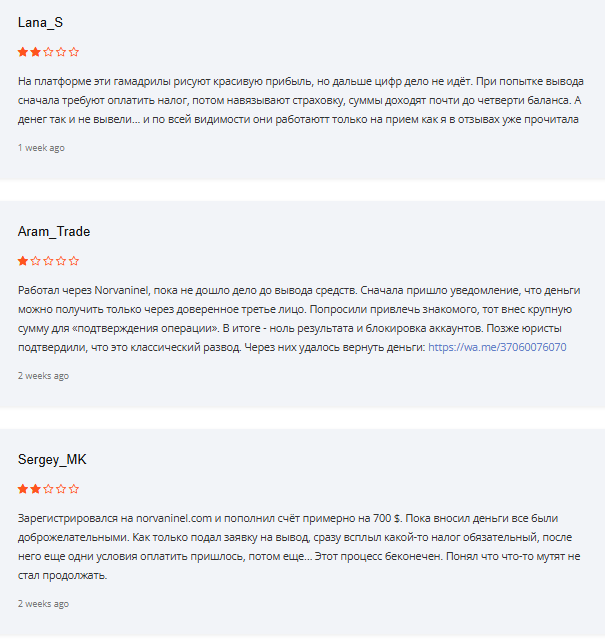 Отзывы трейдеров о работе с Norvaninel