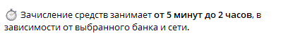 В следующем предложении же разработчики Obmen60 bot пишут об обработке платежа в течение 5-120 минут в зависимости от криптовалютной сети и банка.