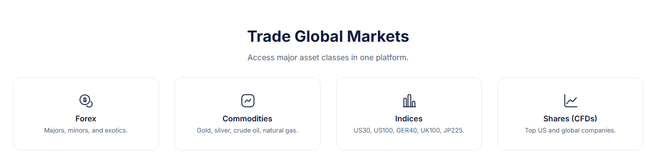 На сайте компании заявляют, что клиентам предоставляется доступ к следующим рынкам: