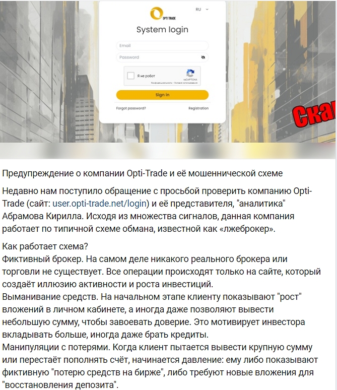 Сходство вывески Opti Tradex и названия этого проекта может говорить о деятельности одних и тех же лиц, вердикт по которым неутешителен.