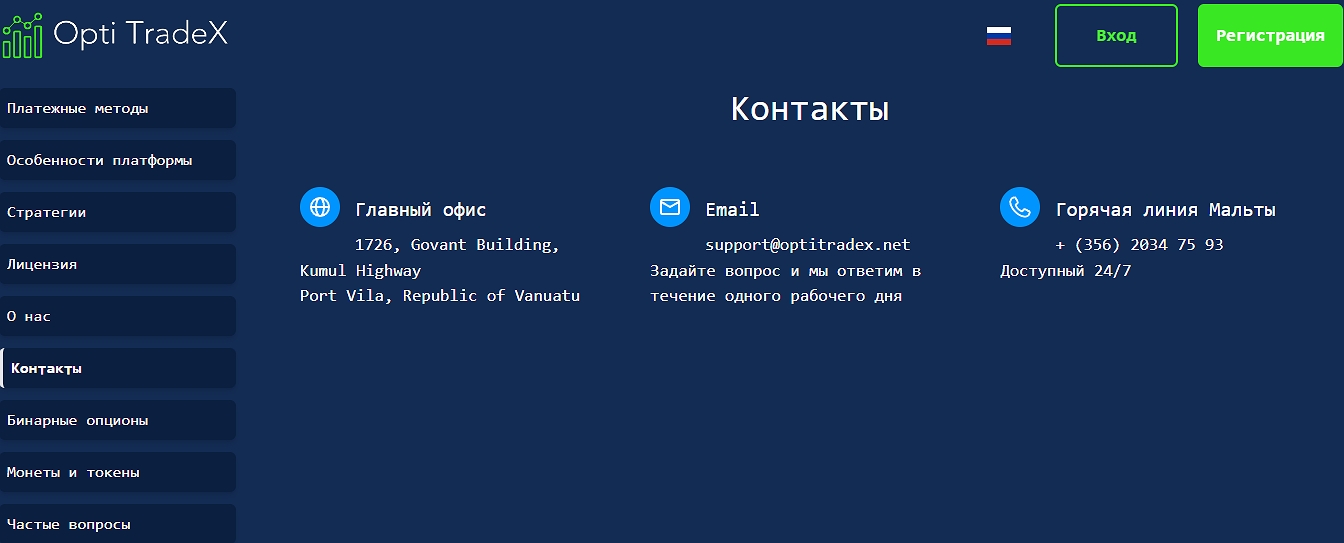 Opti Tradex — площадка, владельцы которой позиционируют ее брокером бинарных опционов. Это странно, ведь в РФ такие торговые инструменты приравнены к азартным играм, а контора вроде как имеет регистрацию на тихоокеанском острове Вануату. Далее узнаем в чем риски трейдинга с кураторами «ОптиТрейдекс» и почему связываться с ними может быть опасно.