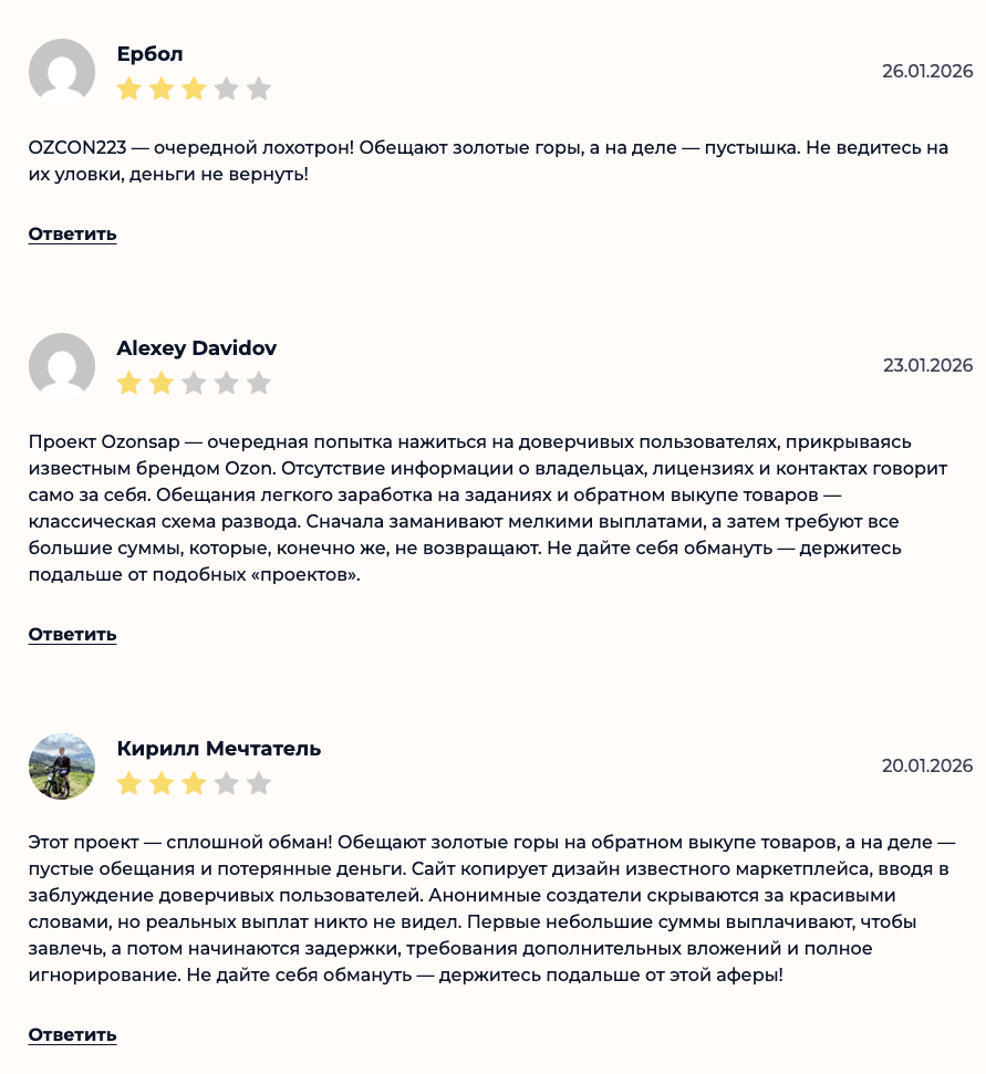 «Вывести деньги невозможно с Ozcon2311» — один из популярных комментариев. Пользователи утверждают, что все обещания — полный блеф.