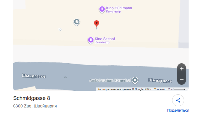 Страницы руководителей Philippos Asset Management представлены в нескольких соцсетях, но все они созданы все в том же сентябре 2025 года. Адресом регистрации указан Schmidgasse 8, 6300 Zug, Switzerland, по которому якобы базируется и главный офис компании. В реальности же по нему работает кинотеатр Kino Seehof, который не имеет никакого отношения к этой конторе.