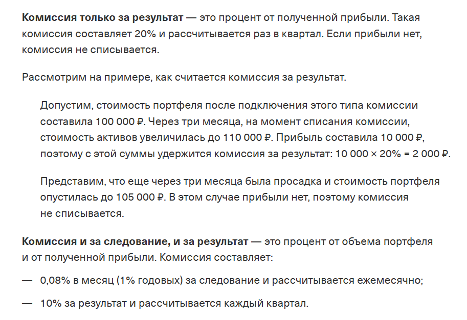 - Клиент сам выбирает схему комиссий, что добавляет гибкости, но смешанный тариф иногда проигрывает иным рыночным предложениям, если портфель почти не приносит прибыли.