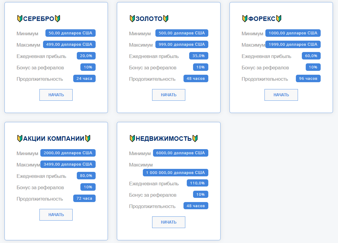 Все планы дают 10% бонус за рефералов. Классическая пирамида – прибыль строится на привлечении новичков.