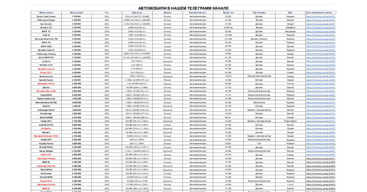 В закреплённых постах на канале сводка по имеющимся в наличии автомобилям с указанием актуальной стоимости, года выпуска, пробега и других характеристик.