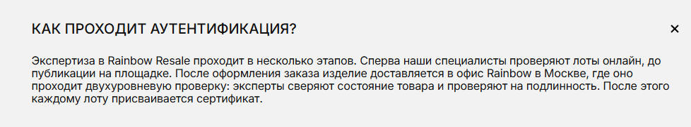 Состояние и подлинность каждого товара специалисты проверяют на подлинность в московском офисе.