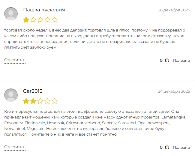 Один клиент внес два депозита и торговал неделю без проблем. Когда попытался забрать прибыль, ему сообщили о необходимости платить дополнительные сборы. Отказ грозил блокировкой аккаунта. Другой пользователь перевел 400 тысяч рублей и столкнулся с требованием подключить бенефициара.