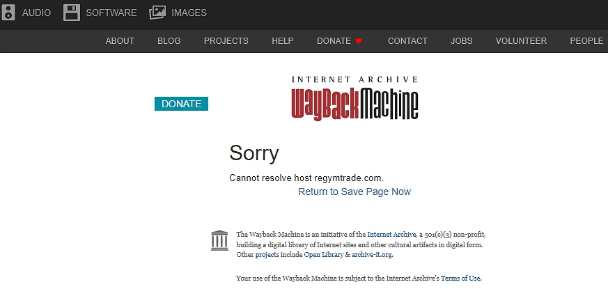 Просмотреть контент портала нельзя даже через Wayback Machine, а попытка ручной архивации кончилась ничем. Бот не смог получить доступ к сайту терминала Trade RegimTrade com, потому информацию пришлось искать в открытых источниках.