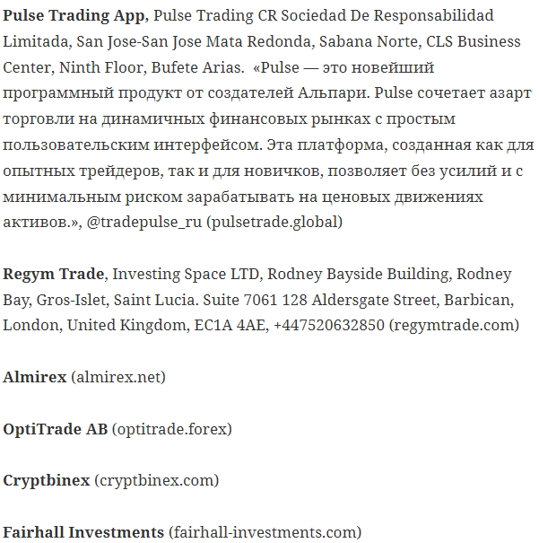 В стоп-листе Цб РФ фирма не значится, но скорее всего аналитики ведомства просто не успели изучить отзывы о брокере Regym Trade. Вероятно, его создатели искали клиентов через мессенджеры и соцсети, чтобы затем привлечь к якобы прибыльной торговле с «опытными аналитиками». Участие в таких предприятиях чревато сливом депозитов, когда при попытке забрать прибыль пользователи могут столкнуться с блокировками и требованиями оплатить комиссии.