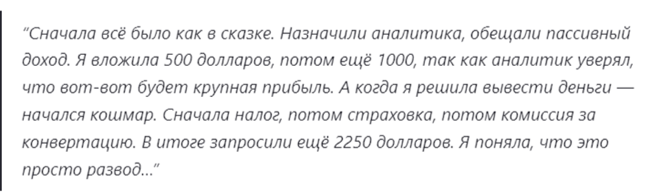 На других сайтах мы нашли отзывы о Revenue Trade. Пользователи жалуются на невозможность получить свои деньги. Администрация сервиса просит оплатить налог, страховку и комиссию за конвертацию. Все это дополнительные расходы, но у пользователей все равно не получается вывести заработанные средства.