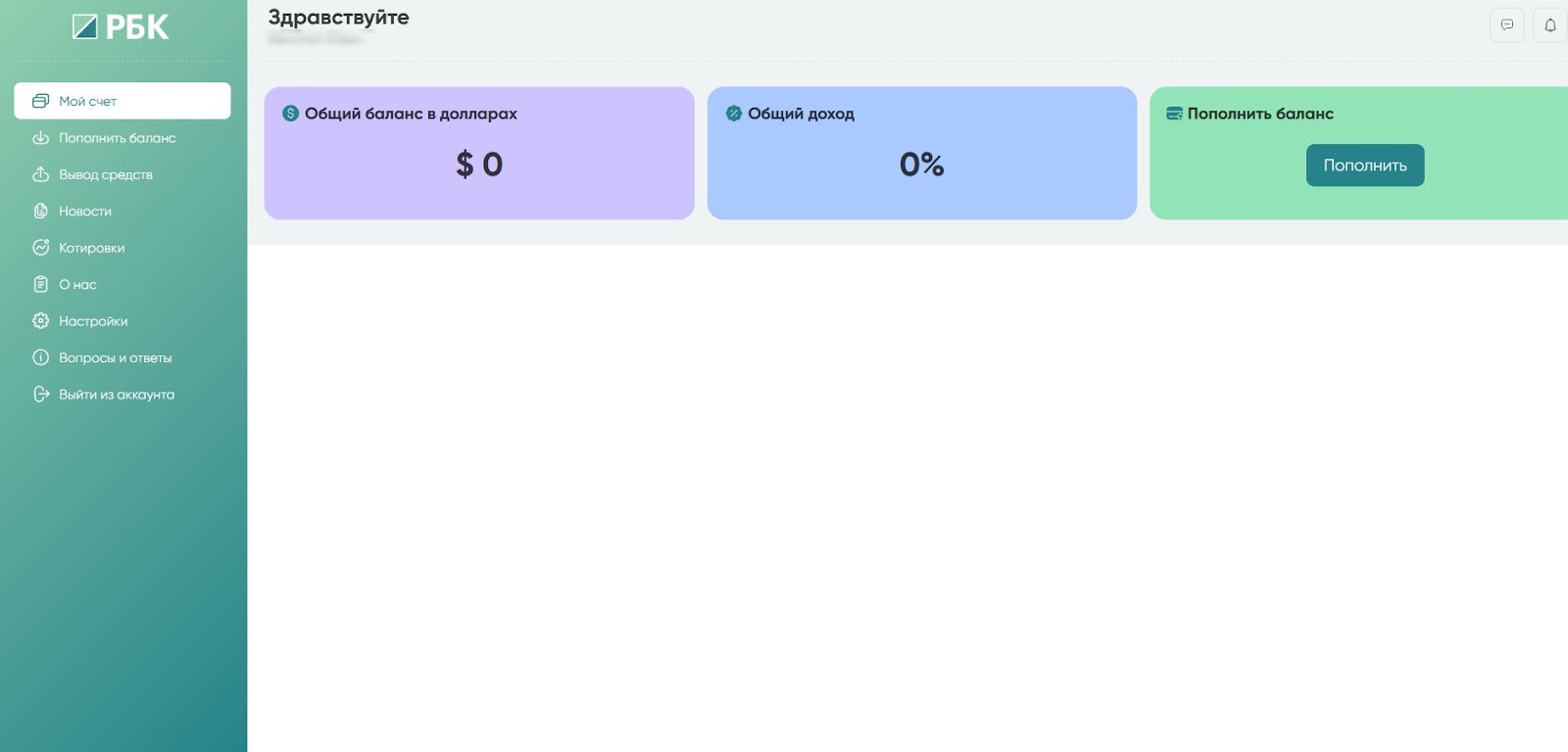 Личный кабинет Rsbc Trdng64 содержит: