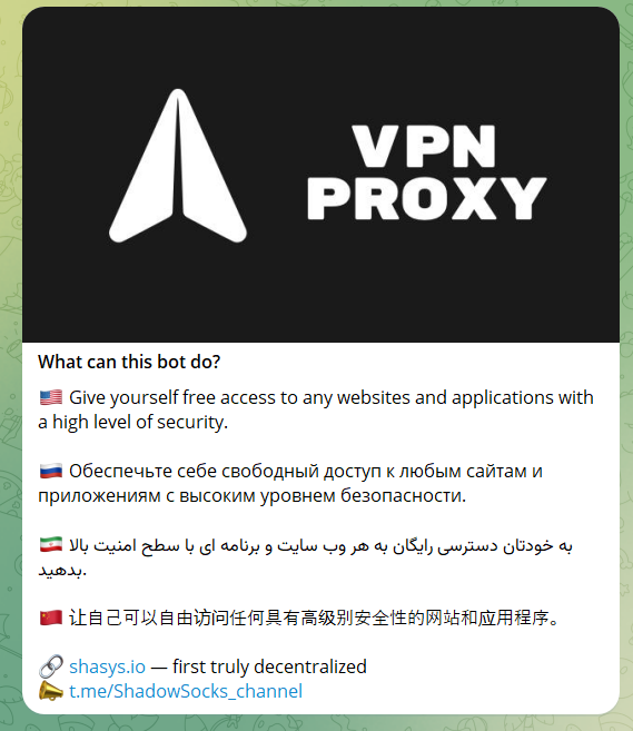 Мы не рекомендуем пользоваться услугами проекта Shadowsocks bot из-за сомнительных оценок от клиентов.