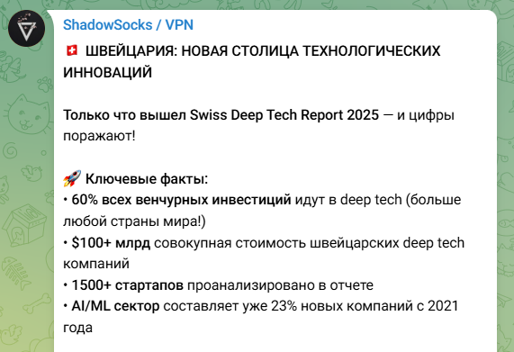 В основном канал проекта ShadowSocks Vpn в Телеграмм посвящен новостям криптовалют и почти все посты на канале это информация о различных инвестициях в крипту, глобальных криптовалютных новостях и результатах и достижениях криптопроектов.