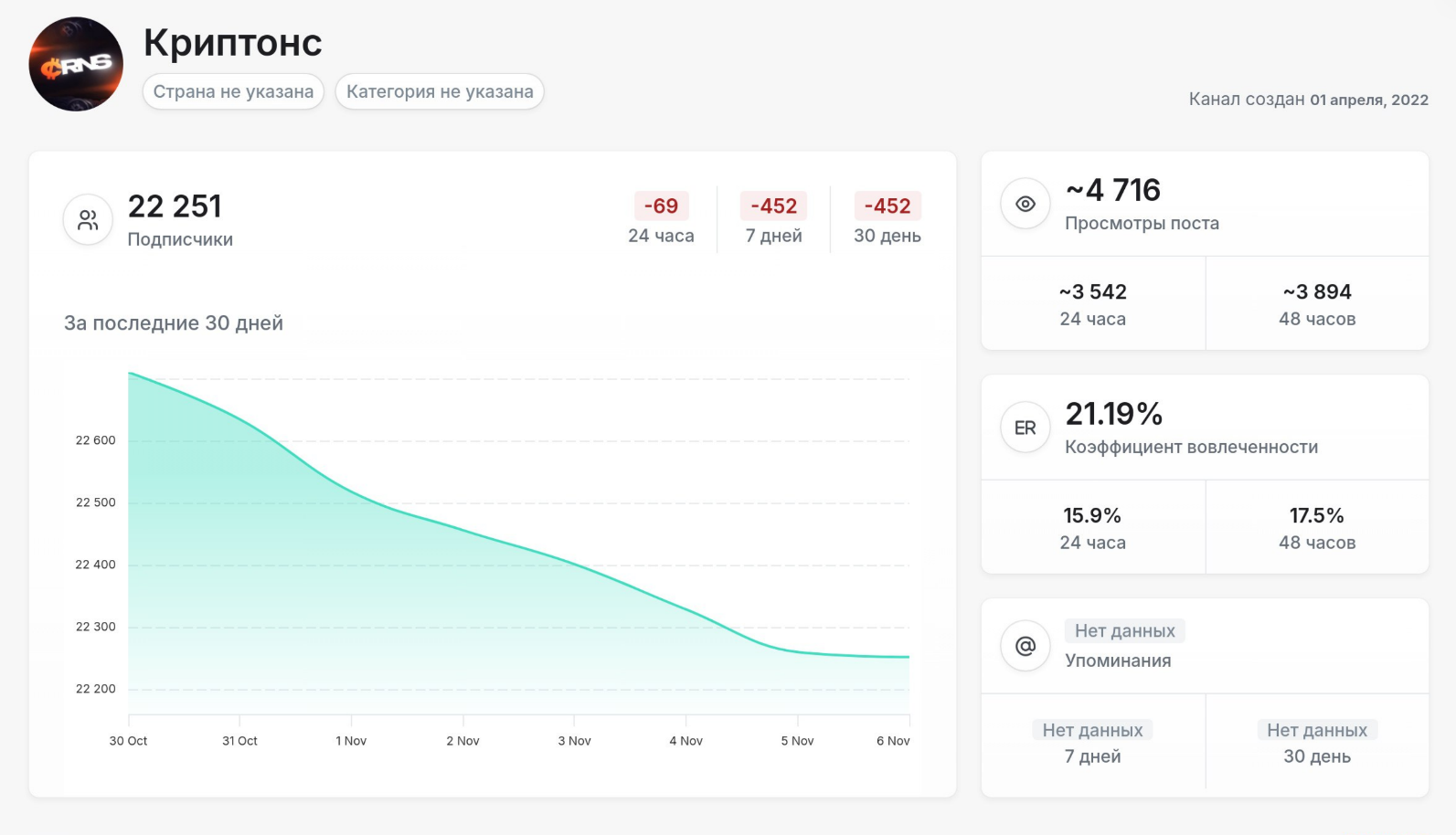 На ТГ канал «Криптонс» подписан 22 251 пользователь. Такая большая аудитория должна создать впечатление, что проект успешный и ему можно доверять. Но в реальности пользователей канала не более 50 человек.