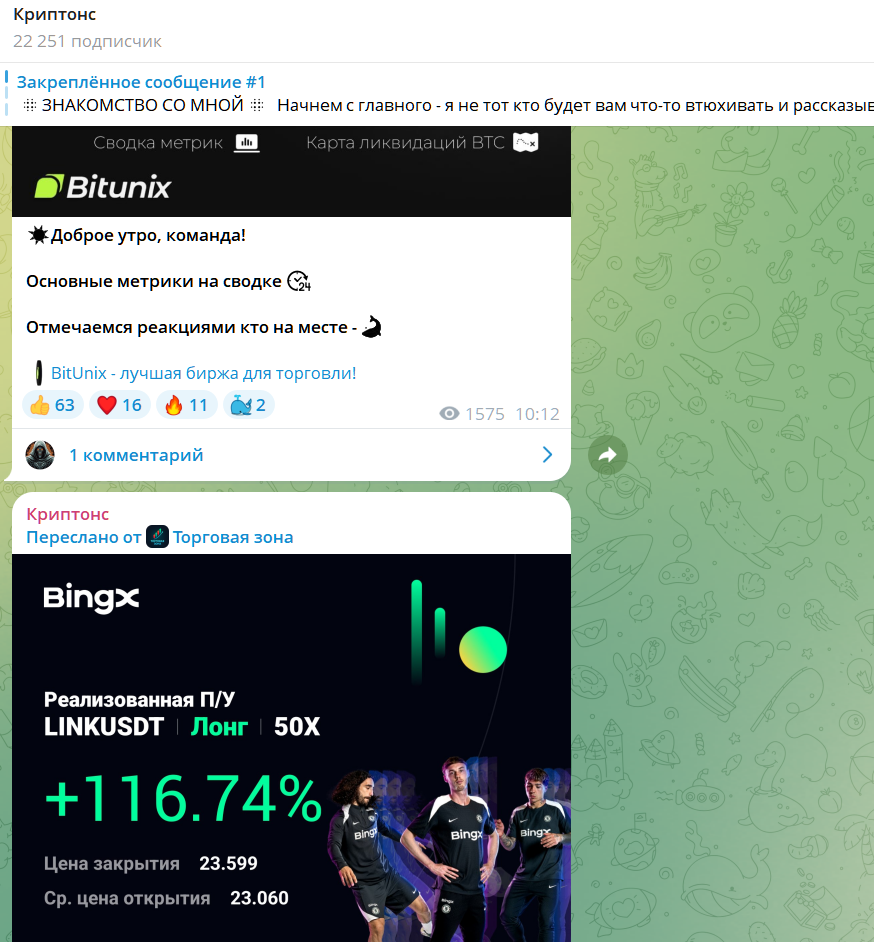 Ничего плохого в том, что проект в ТГ монетизируется за счет реферальной программы нет, но важно выяснить, насколько успешный трейдинг у новичков и опытных трейдеров с этим наставником, который заявляет, что он опытный, известный игрок на бирже.