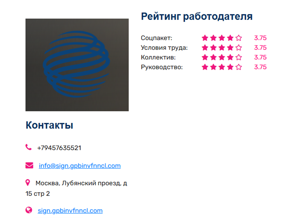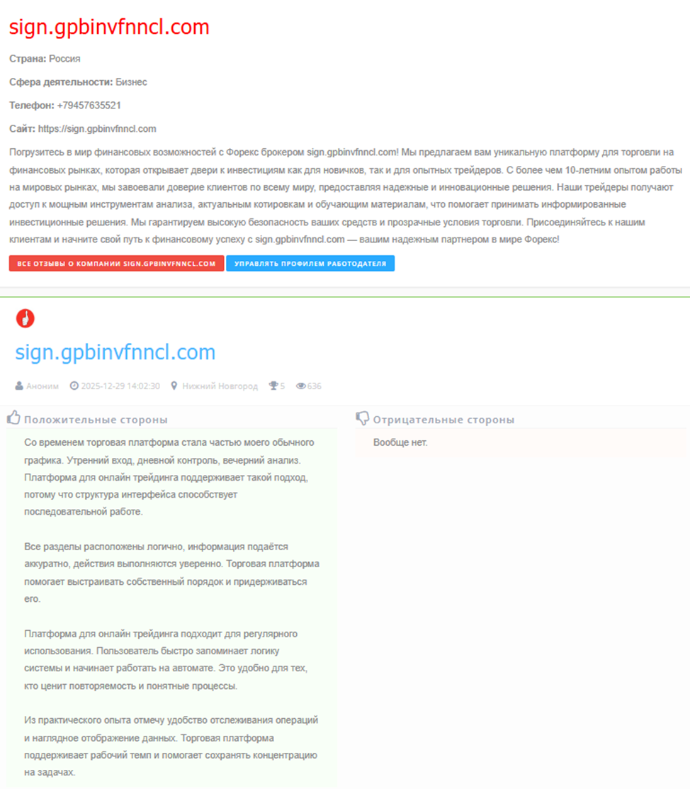 Контактные данные Sign Gpbinvfnncl Com на самом сайте отсутствуют, их можно найти только в сети с одинокими положительными отзывами, явно заказного характера. Среди представленных способов связи: