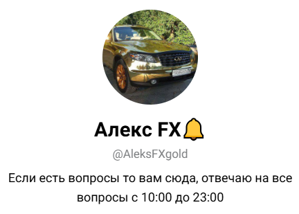 В телеграм-канале «Xauusd Сигналы по золоту» Алекс ежедневно постит несколько рекомендаций по инвестициям и призывает продавать или приобретать разные активы. Чаще всего посты посвящены торговле золотом, поскольку Алекс говорит, что известные ему методы торговли позволят подписчикам заработать на Forex. Реальных подтверждений прибыли на своем канале Алекс не постит.