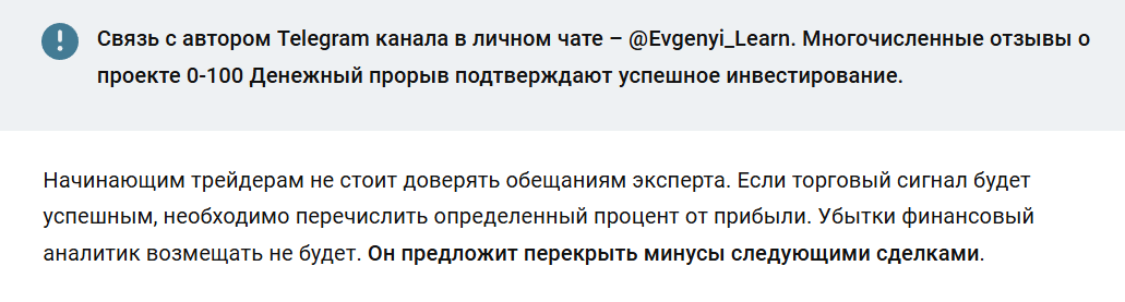 Обзор проекта «Старт 0-100 🚀 Денежный прорыв»: отзывы о канале в Тг, проверка результатов торговли, изучение информации о владельце и анализ деятельности Evgenyi_Learn